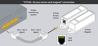 Přístupový senzor VT530 je nezbytný pro kontrolu přístupu a je navržen tak, aby monitoroval stav dveří a oken (otevřené nebo zavřené). Skládá se ze dvou částí: magnetu a senzoru, které zajišťují přesnou detekci otevírání a zavírání přístupových bodů. Lze jej připojit k libovolnému analogovému portu (A1...A8) monitorovací jednotky Vutlan a podporuje řetězové zapojení, což umožňuje propojit více senzorů do série pro snadnou a škálovatelnou instalaci. U větších systémů lze počet senzorů a celkovou délku kabelů rozšířit pomocí jednotky pro prodloužení senzoru VT408, což umožňuje škálovatelné řízení přístupu přes více vstupních bodů. Tento senzor je ideální pro zabezpečení citlivých oblastí a zajištění nepřetržitého monitorování stavu vstupu.
