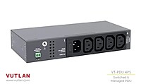 VT-PDU 4PS / Přepínaná PDU se 4 zásuvkami může být použita pro dálkové zapínání, vypínání nebo restartování až čtyř jednotlivých zásuvek a také podporuje komplexní monitorování prostředí.
