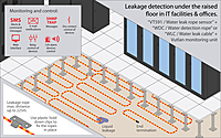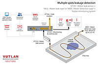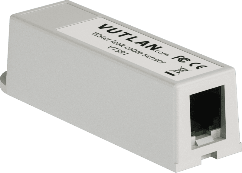 Senzor úniku vody VT591 je navržen tak, aby detekoval úniky vody pomocí snímání poklesu odporu podél připojeného kabelu WLC pro detekci úniku vody. Tento senzor vyžaduje použití kabelu WLC pro detekci úniku, který se objednává samostatně a je k dispozici v různých délkách, aby vyhovoval různým instalačním potřebám. Kabel WLC je navržen tak, aby poskytoval komplexní pokrytí pro detekci úniků na velkých plochách, jako jsou podlahy v datových centrech nebo okolí citlivých zařízení. Může být položen tak, aby pokrýval celý obvod místnosti nebo konkrétní oblasti, které jsou náchylné k únikům. Umístěním kabelu podél okrajů podlahy, v blízkosti vodovodních potrubí, systémů HVAC nebo kolem serverových racků zajišťuje kabel detekci i malého množství vlhkosti kdekoli v monitorované zóně. Díky této flexibilitě může kabel WLC vytvořit souvislou detekční smyčku pokrývající celý obvod podlahy, což je ideální pro velké prostory. Nabízí ochranu tím, že vydává výstrahy, jakmile je detekována voda, čímž minimalizuje riziko poškození kritické infrastruktury.